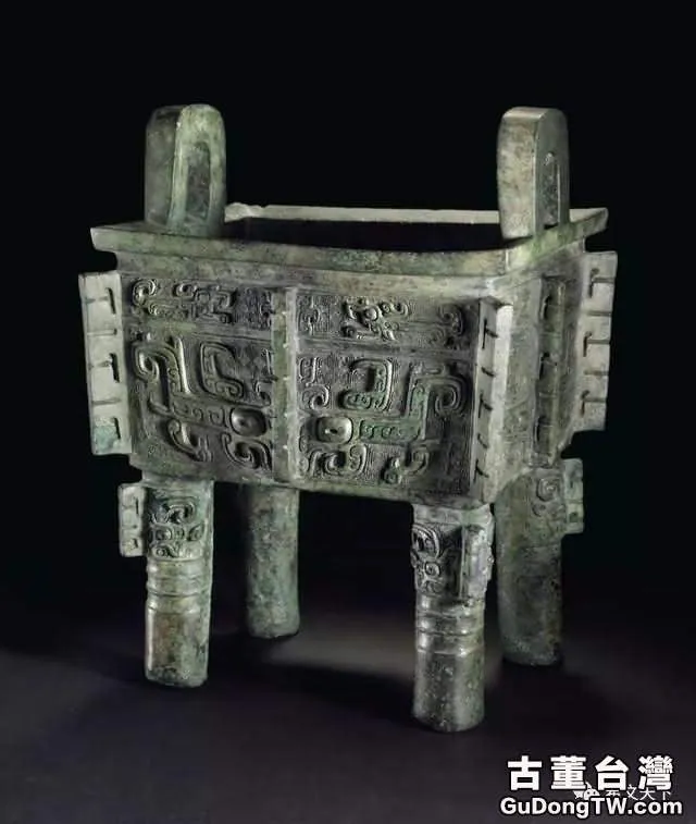 方鼎。一種非常重要且罕見的青銅長方形儀式食物器,方鼎,商代晚期,安陽,公元前13-11世紀。(28.2厘米)高。