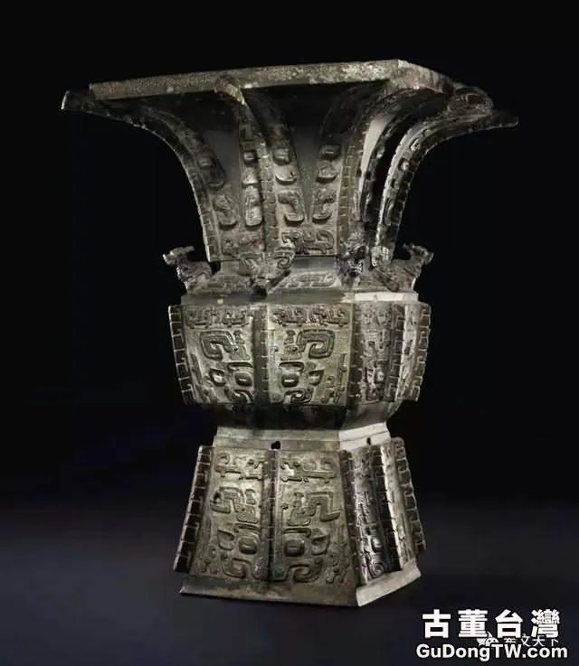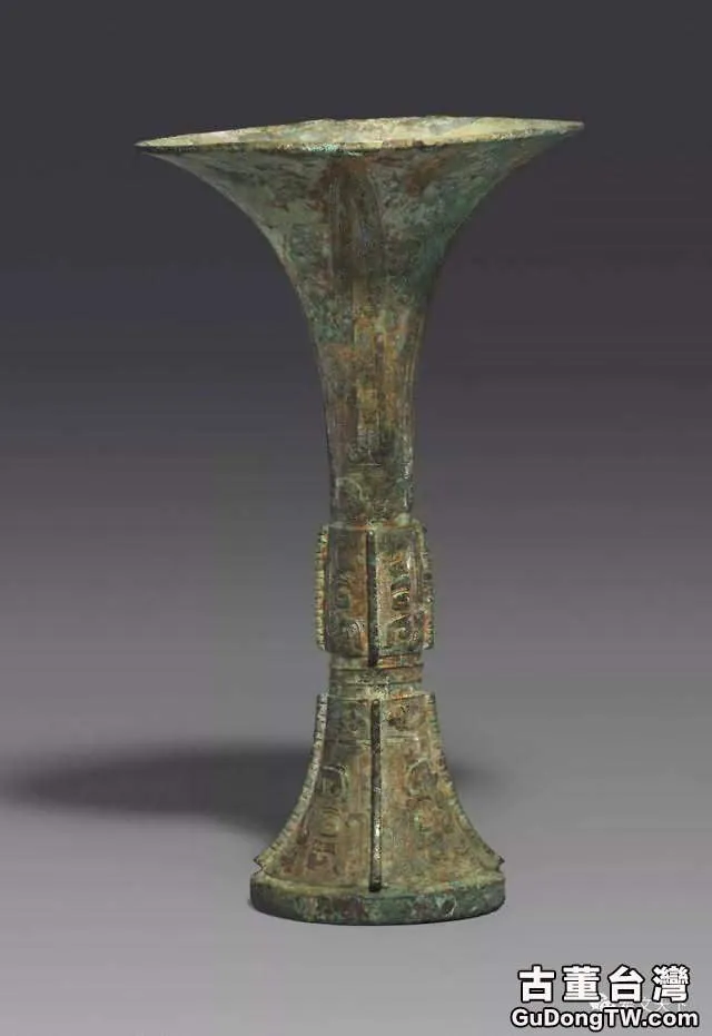 殤(公元前1600-1100)的一種青銅儀式酒船。(27.4厘米)高。 蠱:也是一種儀式酒器,類似於尊但具有纖細的輪廓(如上所述)。