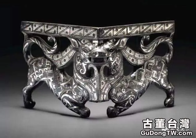 一種非常罕見且重要的銀鑲嵌青銅角落,戰國時期,公元前4世紀至3世紀。(10.5×7.9厘米)。