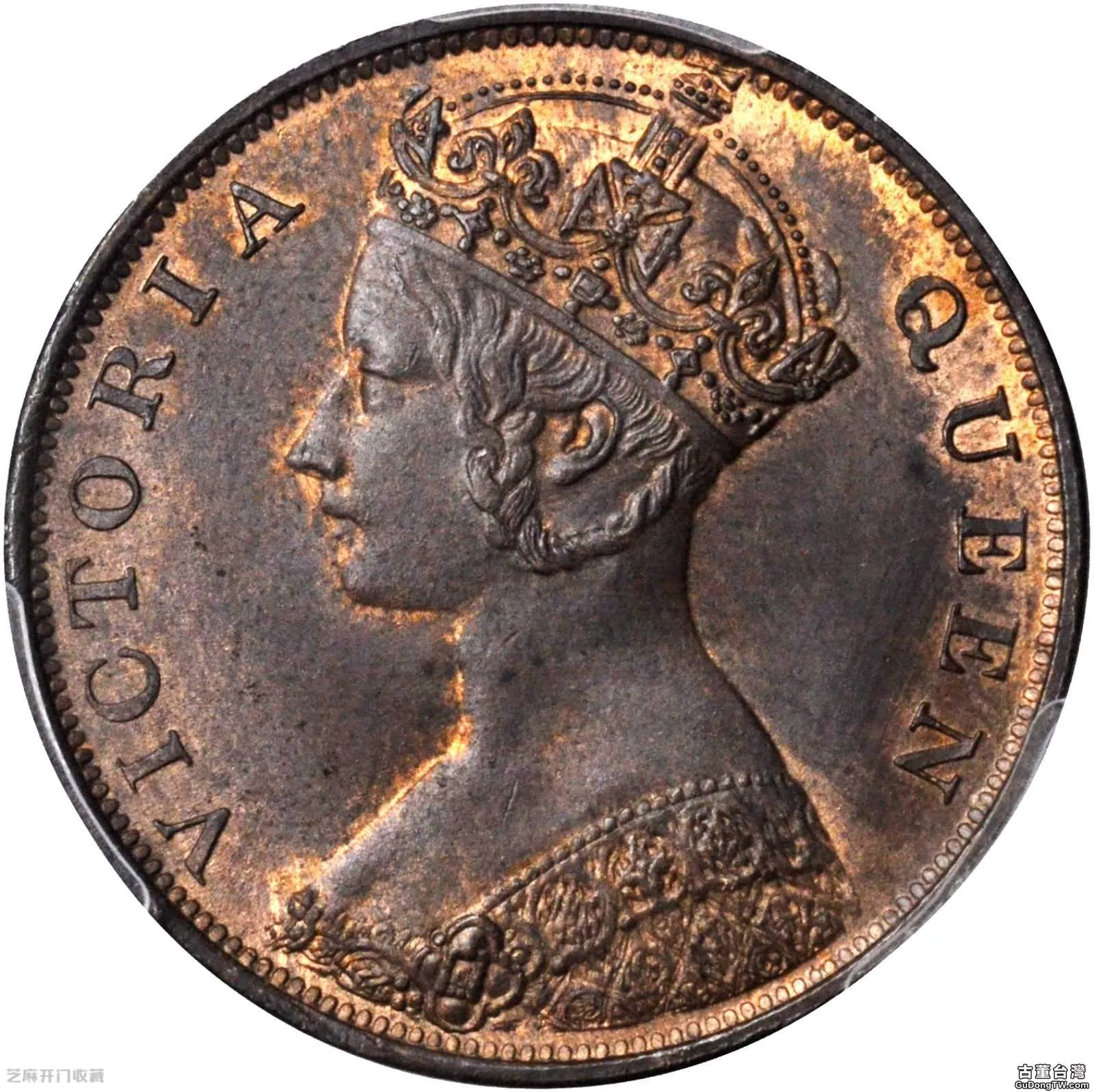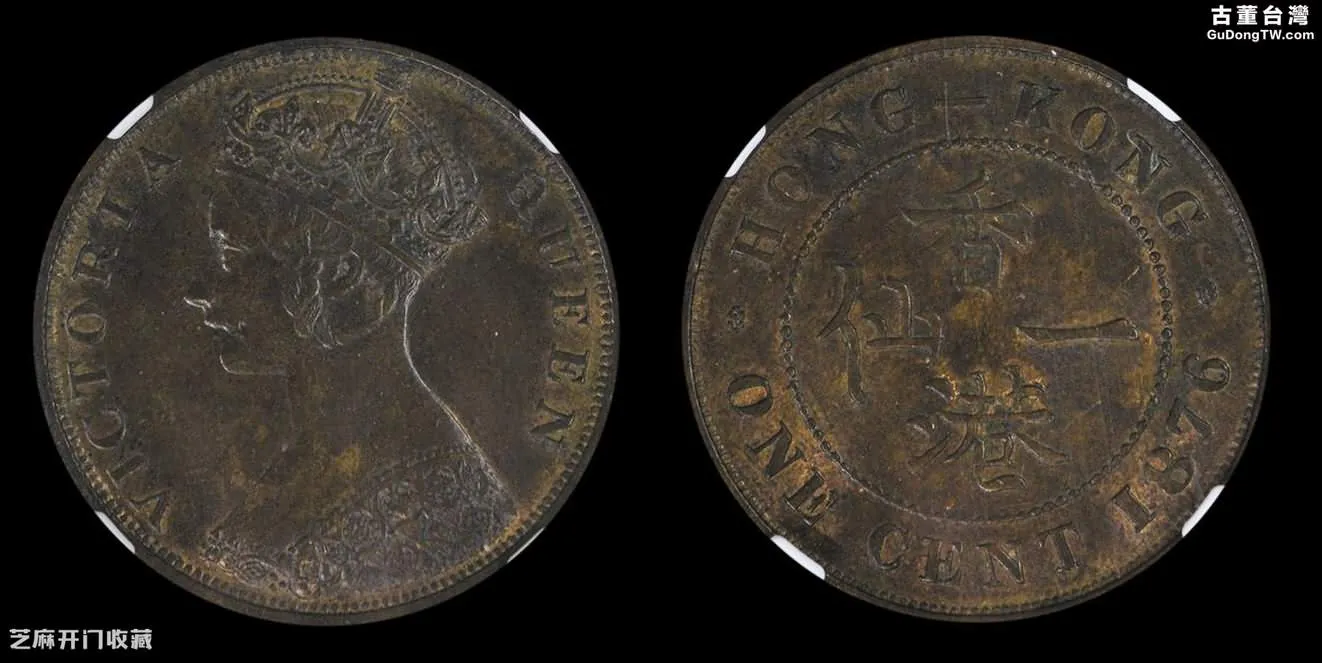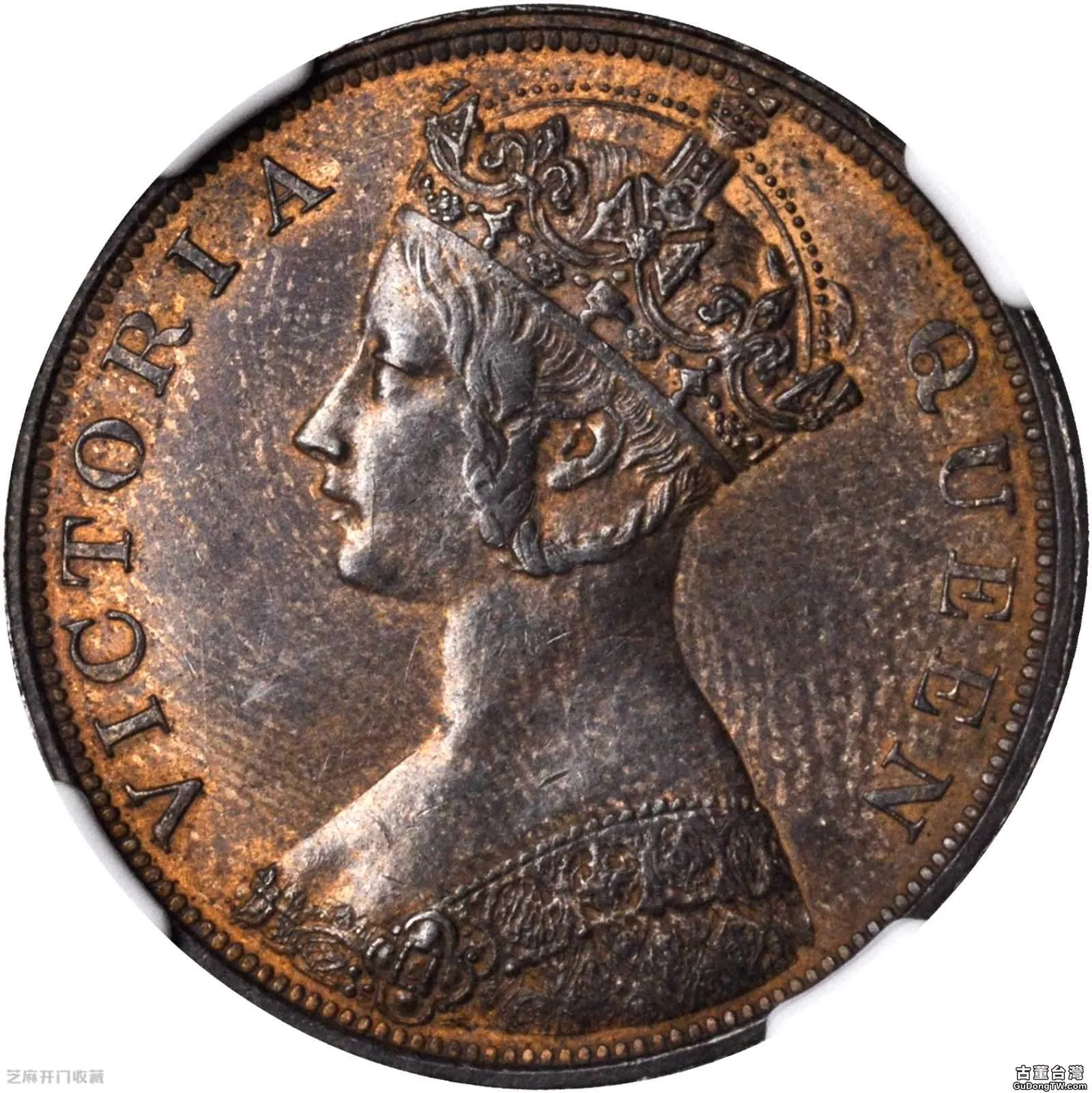 2:1876年香港一仙。 SBP2017年4月香港-港澳錢幣 機制幣 古錢 銀錠,估價: USD 350 – 500,成交價格:USD 2271,成交時間: 2017-04-04 20:00:00。1876年香港一仙。HONGKONG.Cent,1876.NGCMS-65RD.熾烈橘紅色表面,原光,鑄打清晰,細節完善,少許碰痕是唯一的流通痕跡。評分最高,僅有1枚同款獲相同評分。NGCMS-65RD.
