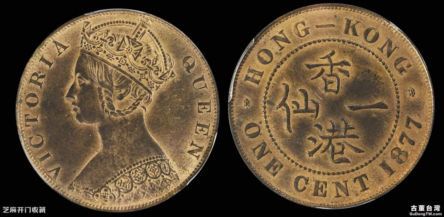 9:1877年香港一仙。 SBP2018年4月香港-網拍專場,估價: USD 100 – 150,成交價格:USD 432,成交時間: 2018-04-05 18:30:00。1877年香港一仙。皇冠上有十四顆明珠。隱見原廠紅銅色。