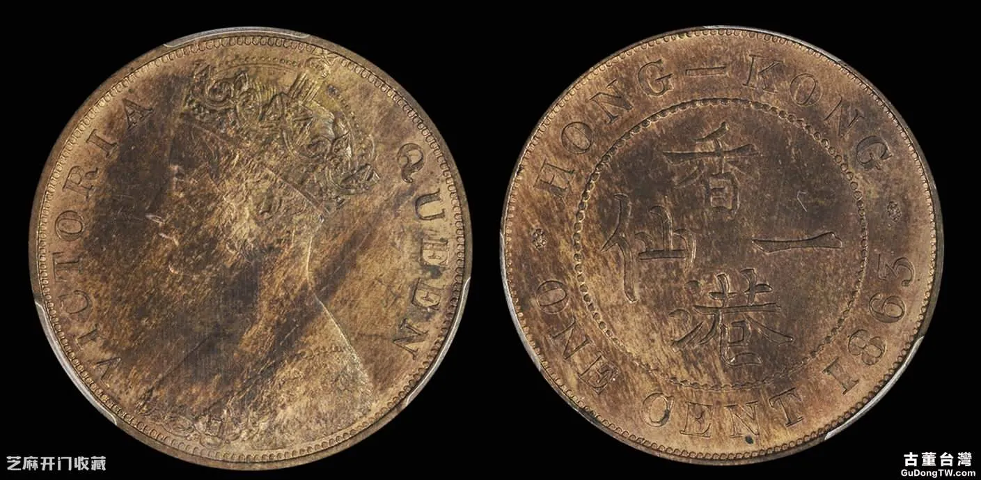 10:1865年香港一仙。 SBP2018年4月香港-網拍專場,估價: USD 300 – 400,成交價格:USD 408,成交時間: 2018-04-05 18:30:00。1865年香港一仙。鑄打精良,可見幾縷銅色。