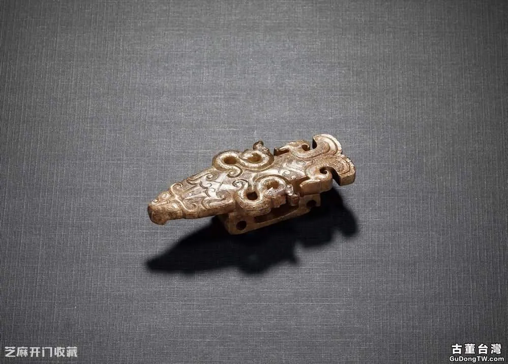 6:戰國玉勾連雲紋雙龍帶鉤,尺寸:長12.5厘米,估價:HKD 120,000 ~ 180,000,成交價: HKD 1,500,000 ,成交時間: 2017-11-29 ,拍賣公司:佳士得香港有限公司,拍賣專場:2017年秋季拍賣會。