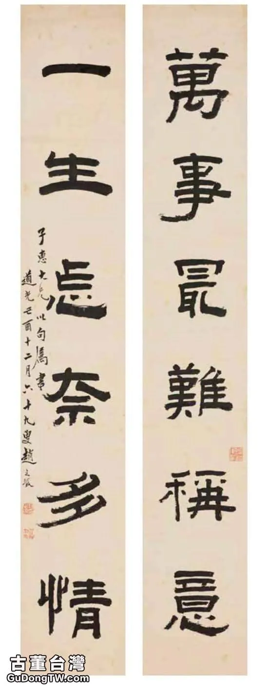 趙之琛 隸書六言聯 《萬事最難稱意 一生怎奈多情》