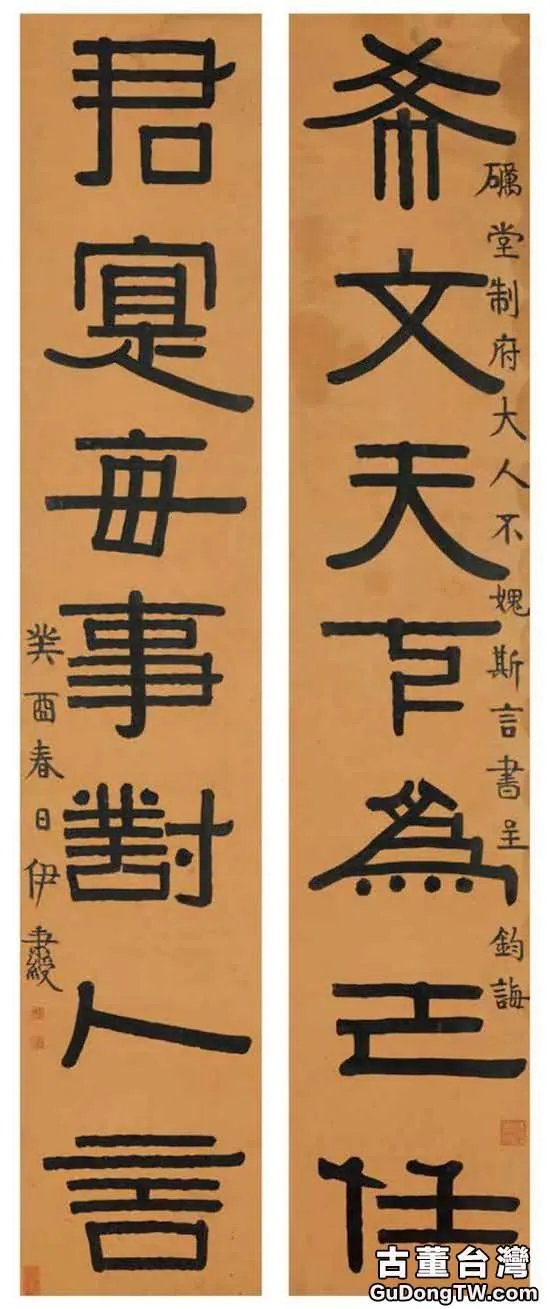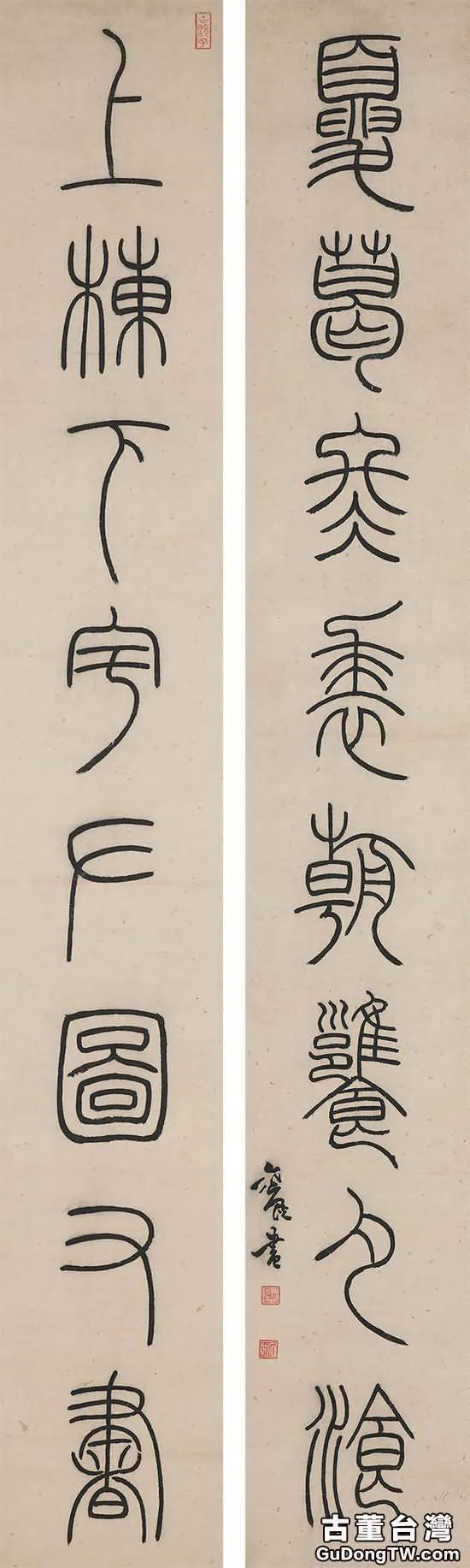 鄧石如 篆書八言聯《上棟下宇左圖右書,夏葛冬裘朝饔夕餐》