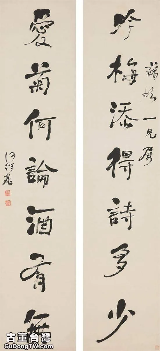 何紹基 行書七言聯《吟梅添得詩多少 愛菊何論酒有無》