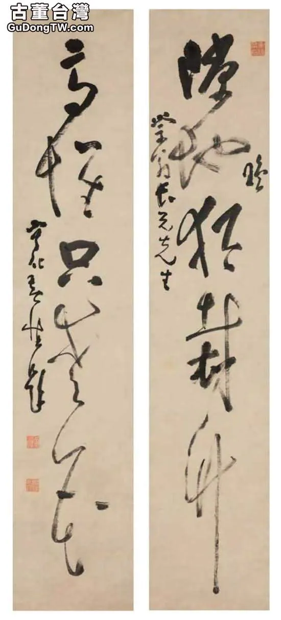 黃慎 草書五言聯 《隙地猶栽竹 高懷只愛花》