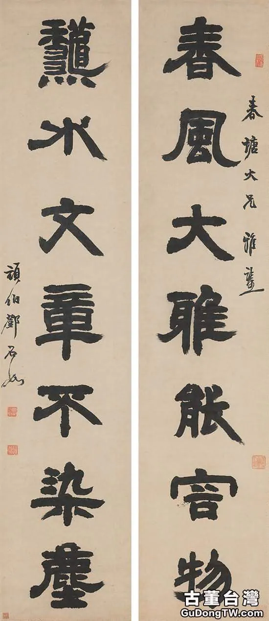 鄧石如 隸書七言聯 《春風大雅能容物,秋水文章不染塵》