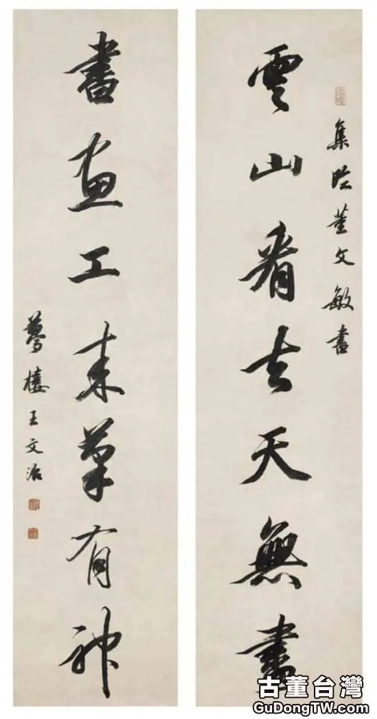 王文治 行書七言聯 《雲山看去天無盡 書畫工來筆有神》