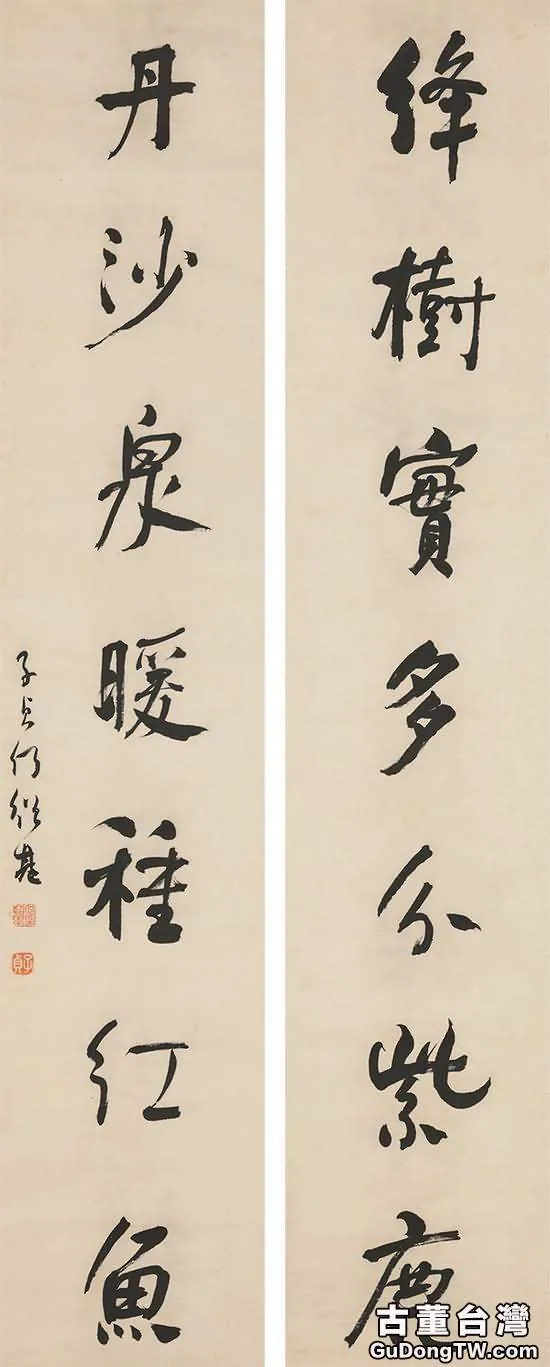 何紹基 行書七言聯 《絳樹實多分紫鹿 丹沙泉暖種紅魚》