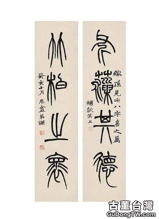 六言聯,為恪齋吳大澂舊藏,從結體自然、遣筆從容的書寫風貌看,當屬其成熟期之作。