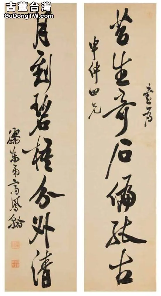 高鳳翰 行書七言聯《苔生奇石偏能古 月到碧梧分外清》