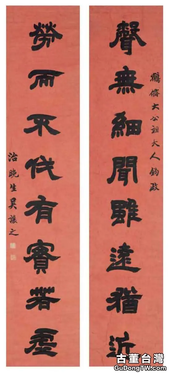 吳熙載 隸書七言聯 《聲無細聞雖遠猶近 勞而不伐有實若虛》
