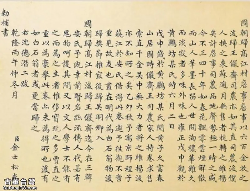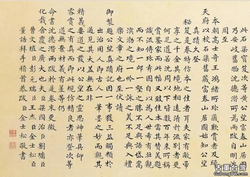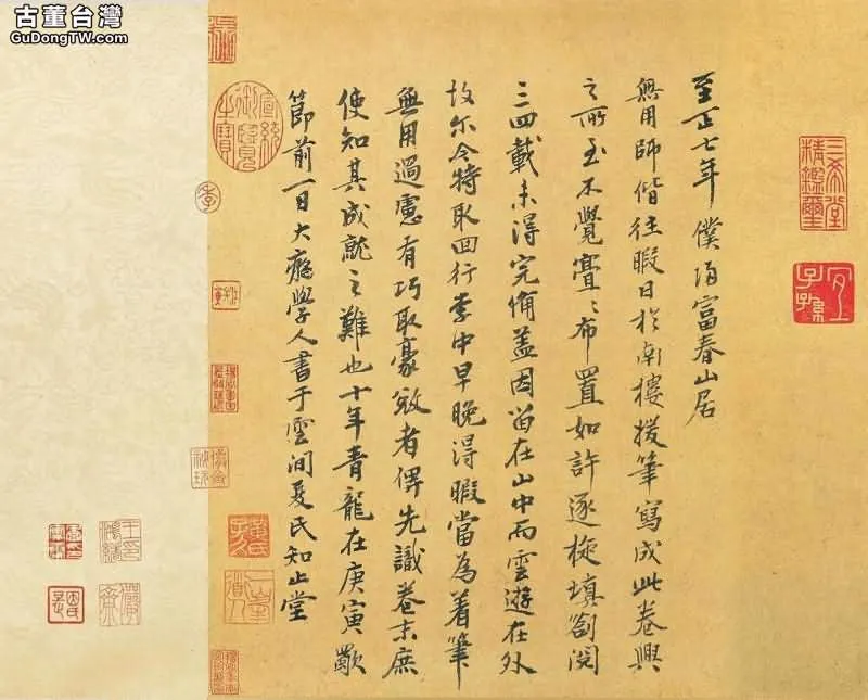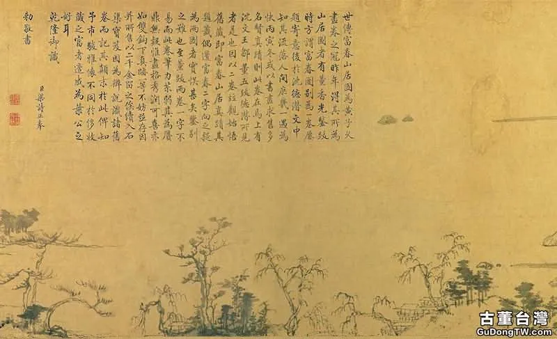 《富春山居圖》的「子明卷」曾被清乾隆所得,並被認定是「黃公望真跡」,愛不釋手。每觀賞一次就題詩一首,先後題了48年、50多處,而且仍然意猶示盡,最後在前隔水題有「以後展玩亦不復題識矣」的識款。此「子明卷」現藏台北故宮博物院。