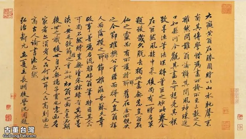 由是可知,山水畫到黃子久,在結構上,要把遠觀與近玩的山水經驗合而為一,並以隨機應變的方式,即興呈現;在筆法上,要把個人畫法與古人畫法合而為一,展現文化歷史感;在墨法上,則要層次繁、呼應多,達到品位深厚、滋潤豐富的境地。
