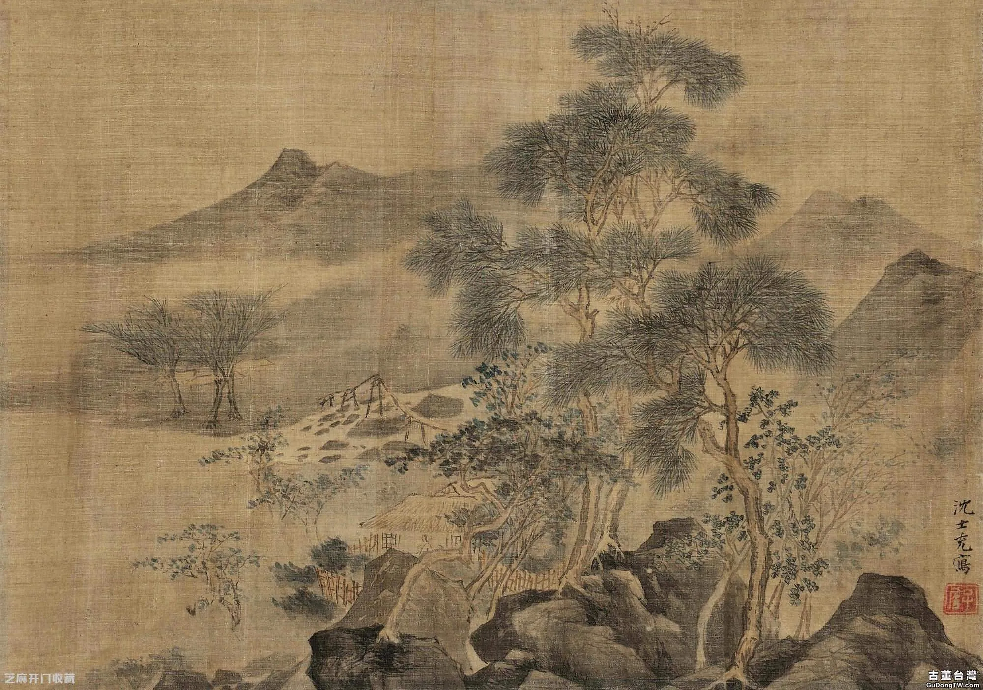 8:沈士充山居圖立軸,尺寸:23×33厘米,估價:RMB 600,000 ~ 900,000,成交價: RMB 690,000 ,成交時間:2014.01.12,拍賣公司:北京保利國際拍賣有限公司,拍賣專場:第25期精品拍賣會。