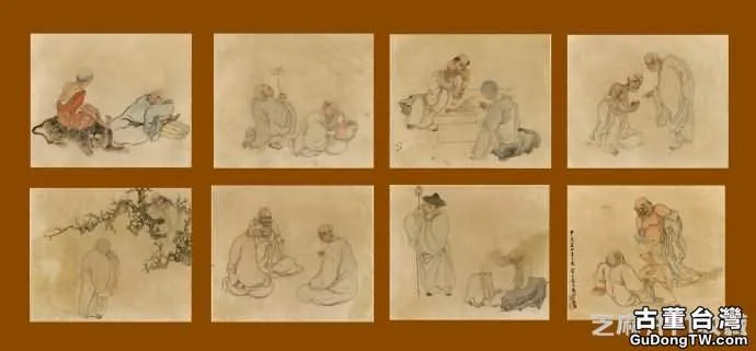 這幅作品的尺寸尚且不詳,目前流失於海外,收藏於大英博物院。此畫描繪的佛教著名人物——十八羅漢。此畫構圖簡練,設色清雅,畫中人物坐臥對弈,神態各異,十分悠然自得。這幅畫冊流傳至今,依然保存完好,實屬難得。