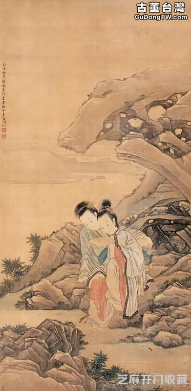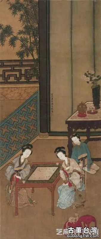 圖3: 雙美對弈圖 立軸 絹本 , 拍賣成交價格估計:RMB 8,000-15,000,最終成交價格:RMB 115,000, 拍賣專場:中國嘉德國際拍賣有限公司 嘉德四季第二十七期拍賣會, 拍賣成交時間:2011-09-19, 尺寸:80×34cm。