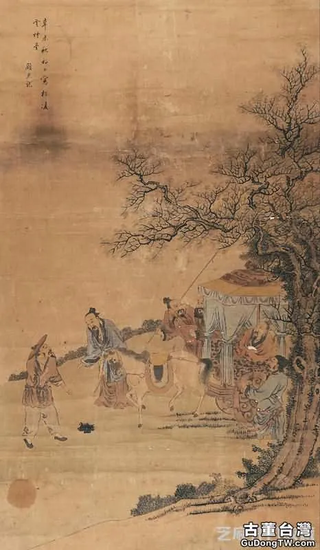 圖1:孔子出遊圖 立軸 設色紙本, 拍賣成交價格估計:RMB 850,000-1,200,000,最終成交價格:RMB 977,500, 拍賣專場:北京保利國際拍賣有限公司 第25期精品拍賣會, 拍賣成交時間:2014-01-12, 尺寸:153×89cm。