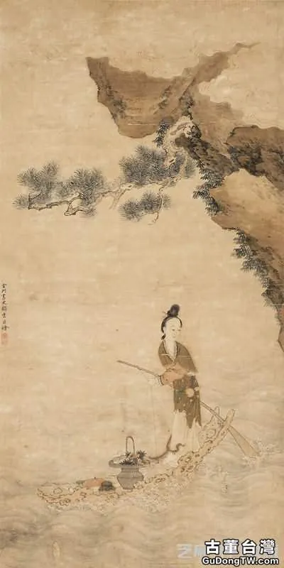 圖5:仙人乘槎圖 鏡心 設色紙本, 拍賣成交價格估計:RMB 50,000-80,000,最終成交價格:RMB 57,500, 拍賣專場:北京中投嘉藝國際拍賣有限公司 呼和浩特首屆文物藝術精品拍賣會, 拍賣成交時間:2013-01-26, 尺寸:93×46cm。
