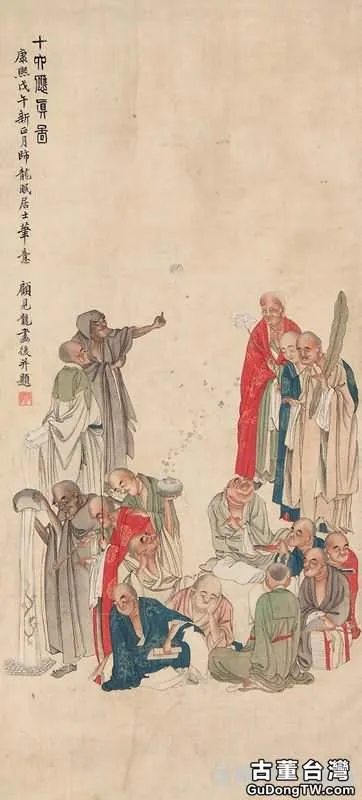 圖7:十六應真圖 立軸 設色絹本, 拍賣成交價格估計:RMB 32,000-32,000,最終成交價格:RMB 35,200, 拍賣專場:北京萬隆拍賣有限公司 2009大型藝術品拍賣會, 拍賣成交時間:2009-06-01, 尺寸:89×40cm。