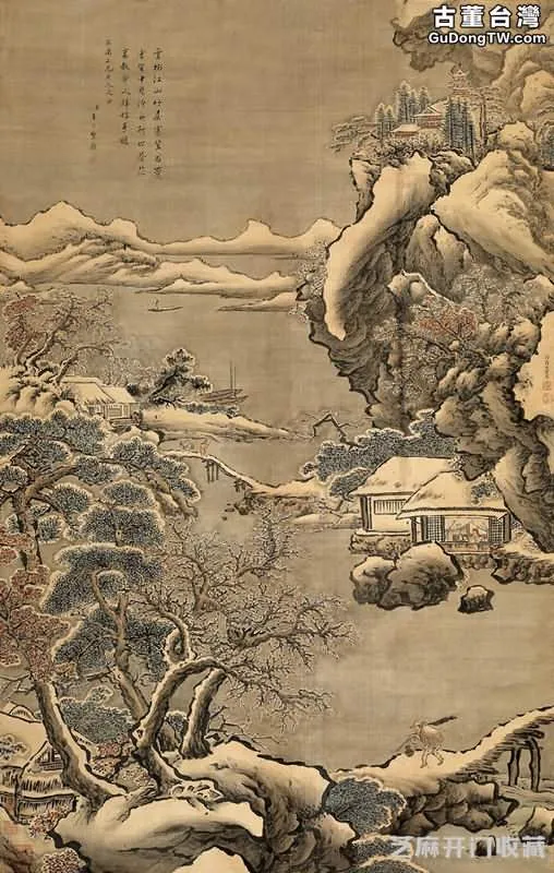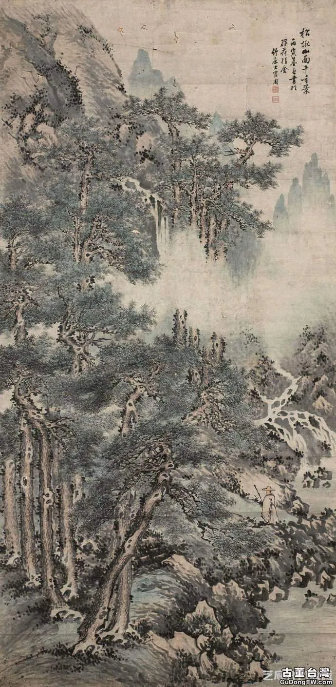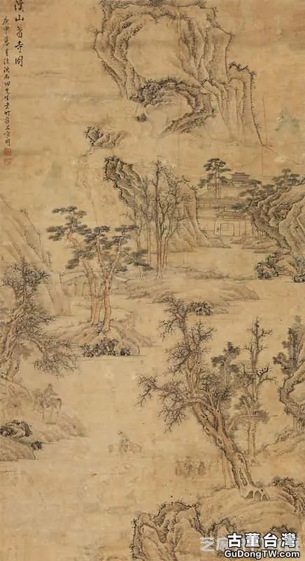 圖6:溪山蕭寺圖 立軸 設色紙本, 拍賣成交價格估計:RMB 100,000-150,000,最終成交價格:RMB 115,000, 拍賣專場:廈門翰風國際藝術品資產管理有限公司 2013年春季古董珍玩書畫拍賣會, 拍賣成交時間:2013-04-20, 尺寸:153×84cm。