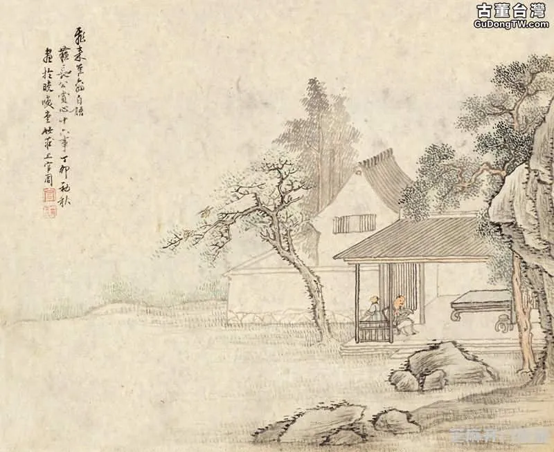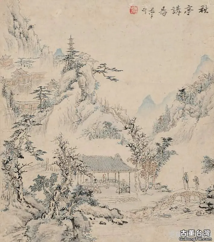 圖4:秋亭講易 鏡心 設色紙本 ,最終成交價格:RMB 46,000, 拍賣專場:北京保利國際拍賣有限公司 第17期精品拍賣會 , 拍賣成交時間:2012-01-09, 尺寸:29×26cm。