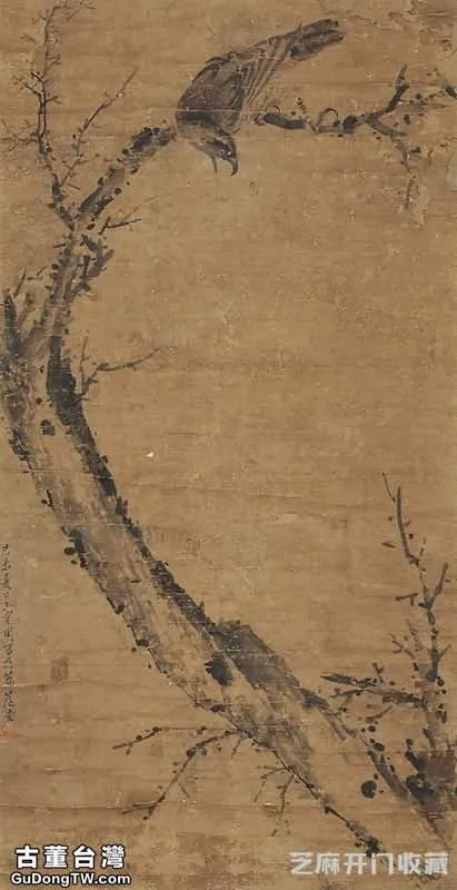 圖5:花鳥 立軸 設色紙本, 拍賣成交價格估計:RMB 25,000-32,000,最終成交價格:RMB 36,160, 拍賣專場:廣東省拍賣行有限公司 2014春季藝術品拍賣會, 拍賣成交時間:2014-06-22, 尺寸:113×58cm。