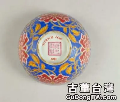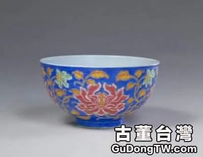 康熙御制藍地琺琅彩纏枝牡丹紋碗