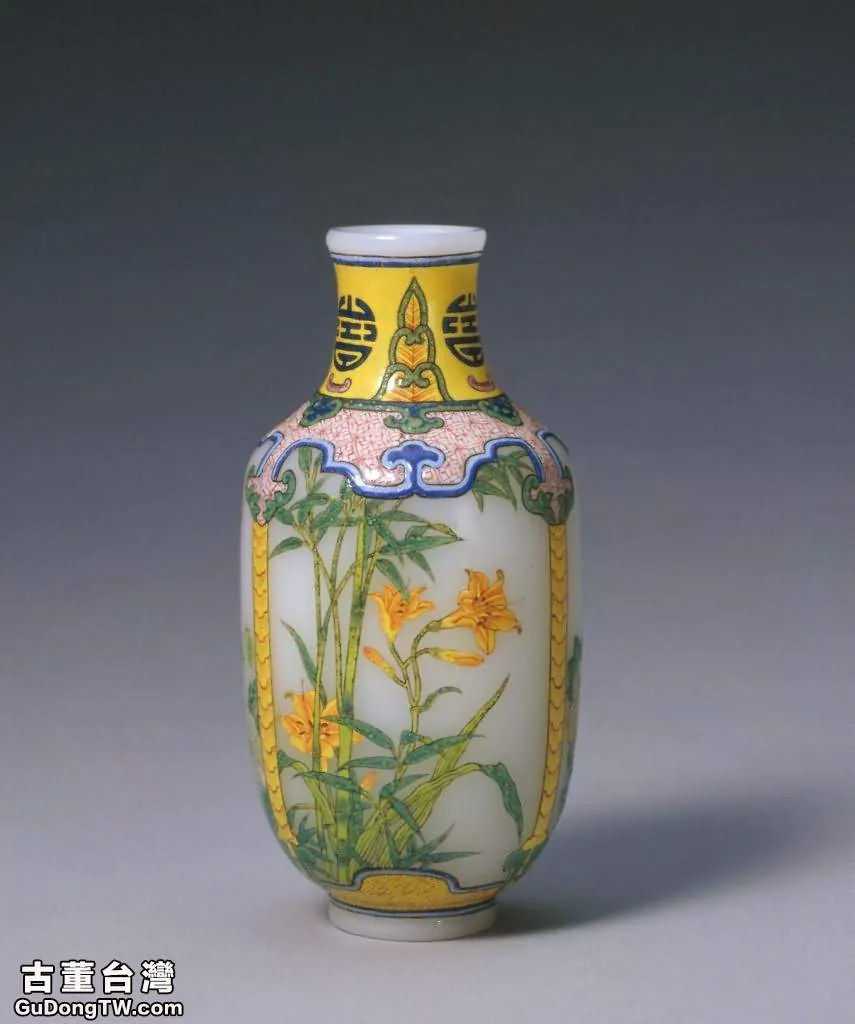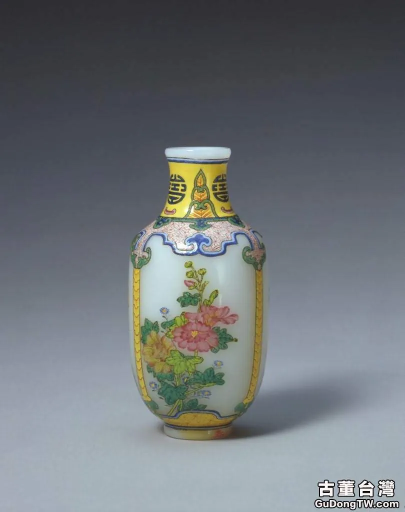 清乾隆時期玻璃胎畫琺琅彩花卉紋瓶