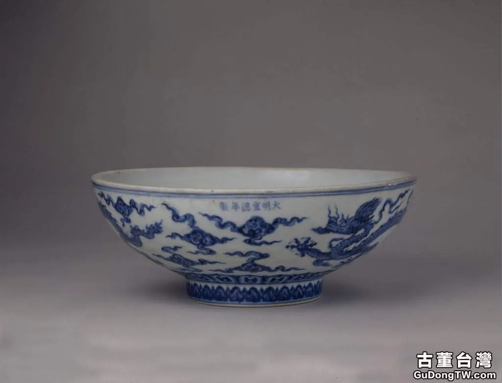 宣德瓷器造型碗的外壁以花瓣紋裝飾是宣德時典型的風格特徵,花瓣紋通常作為主體紋飾與其它花紋配合。
