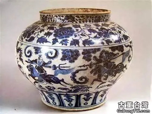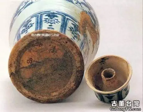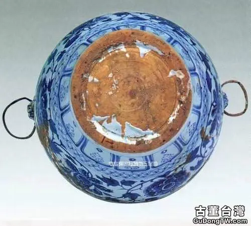 5、胎色:由於土沁的程度、清洗的程度及火石紅的程度不同,胎色的「能見度」也有異。顯然,不應該把土色、火石紅呈色、鐵銹斑、霉斑及其它附著物的顏色視為「胎色」。所謂胎色,應該指瓷器胎體的本色。有的瓷器露胎部分全部被窯紅(火石紅)覆蓋,有的土沁滿佈而未經清理(或只略為清洗,土色仍在),這種情況下辨認「胎色」是毫無意義的,因為無從辨認。辨認胎色最理想的狀態是從器物的破缺處(哪怕很小的磕點)觀察。其次為既無窯紅又無土沁,呈「本來面目」者,這種狀態的元青花不多。再其次為底部清理比較徹底者。國外收藏的元青花一般清理的較徹底,有時火石紅也被磨去一些而見真正胎色(這種做法須有分寸);國內收藏者許多基本不做任何清理,如高安藏品,許多根本無從觀察胎色。元青花的胎色有這樣四種:瑩白色(最好的一種胎色,有潤澤感);灰白色(最普遍的一種。說它灰白,此指白中略帶一點灰色調,不同於宋瓷的「灰白胎」);米白色(往往帶有不明顯的淺紫斑點);薑黃色(胎質細而稍鬆)。