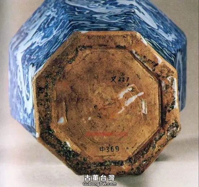 圖316 河北省博物館藏元代青花海水龍紋八稜梅瓶底部