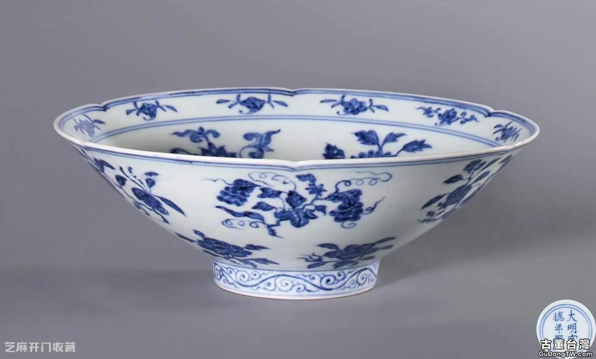 5:明宣德青花折枝花果紋葵口碗,尺寸:直徑22.5厘米,估價:RMB 7,000,000 ~ 9,000,000,成交價: RMB 11,500,000 ,成交時間:2017.12.04,拍賣公司:北京大羿拍賣有限公司,拍賣專場:2017秋季藝術品拍賣會。