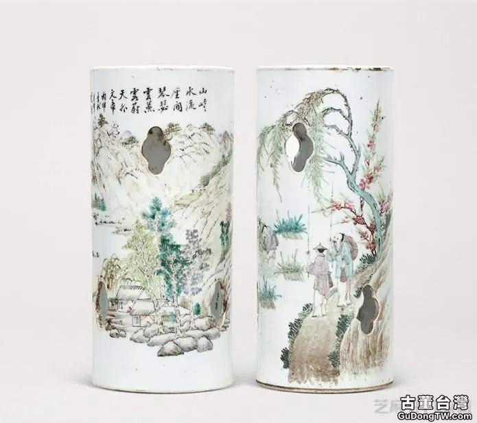 圖3:清晚期 高心田 淺絳彩人物山水帽筒 (二件),最終成交價格:RMB 11,500元, 拍賣專場:北京保利國際拍賣有限公司 北京保利十週年秋季拍賣會, 拍賣成交時間:2015-12-06, 尺寸:高27.5cm。