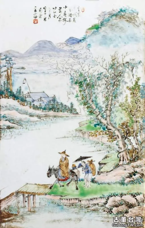 圖6:清光緒 高心田淺絳山水瓷板, 拍賣成交價格估計:RMB 50,000-80,000,拍賣專場:北京萬隆拍賣有限公司 2013秋季藝術品拍賣會, 拍賣成交時間:2013-12-04, 尺寸:長39.5cm;寬24.5cm。